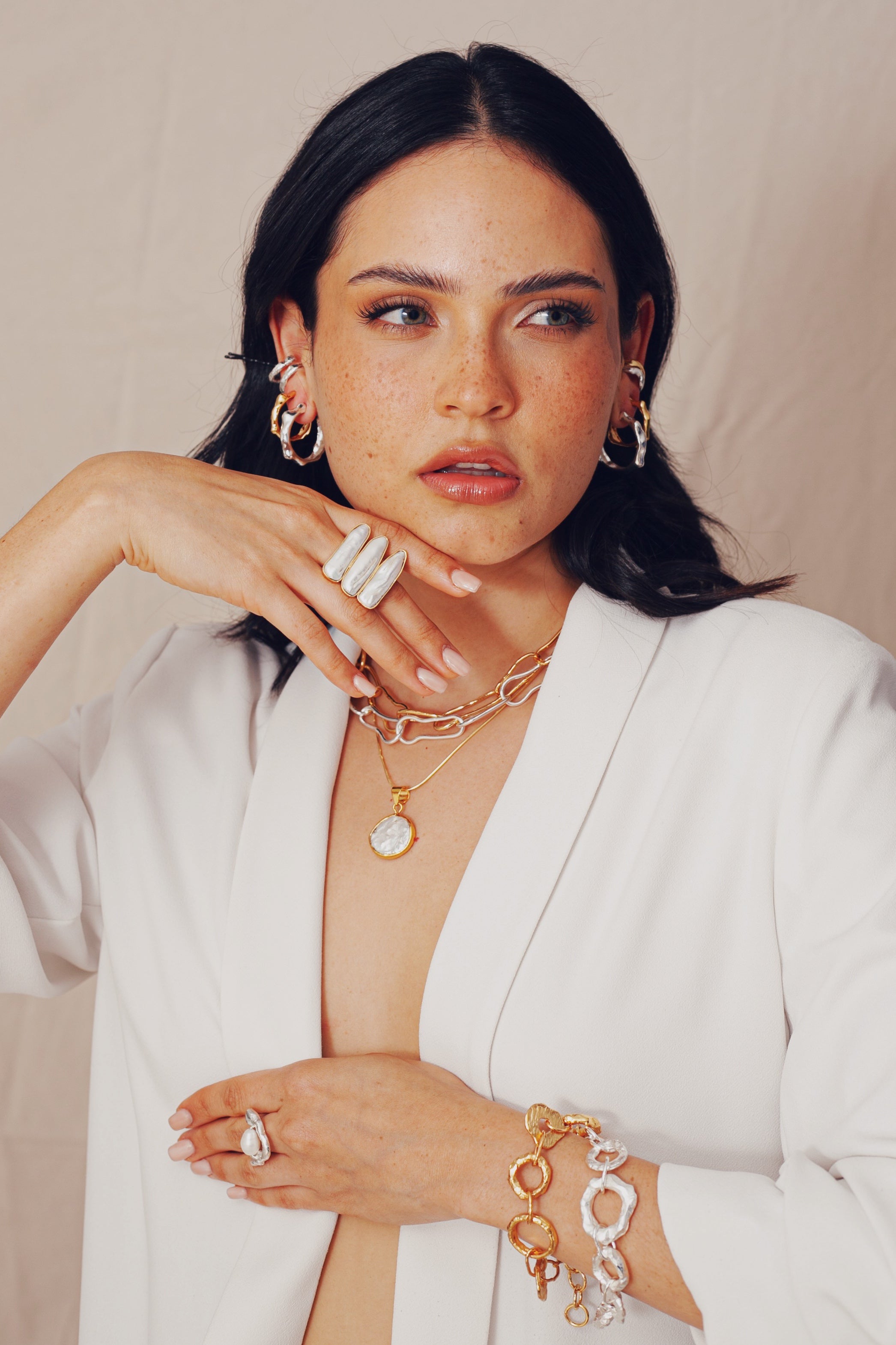 Nuestras joyas celebran la autenticidad, la fuerza y la singularidad de cada mujer. Hechas a mano por artesanos colombianos, cada pieza refleja la belleza imperfecta de la naturaleza, con perlas naturales y esmeraldas en bruto que cuentan su propia historia. No buscamos la perfección, sino la esencia real y única de cada creación, tal como cada mujer que las lleva.